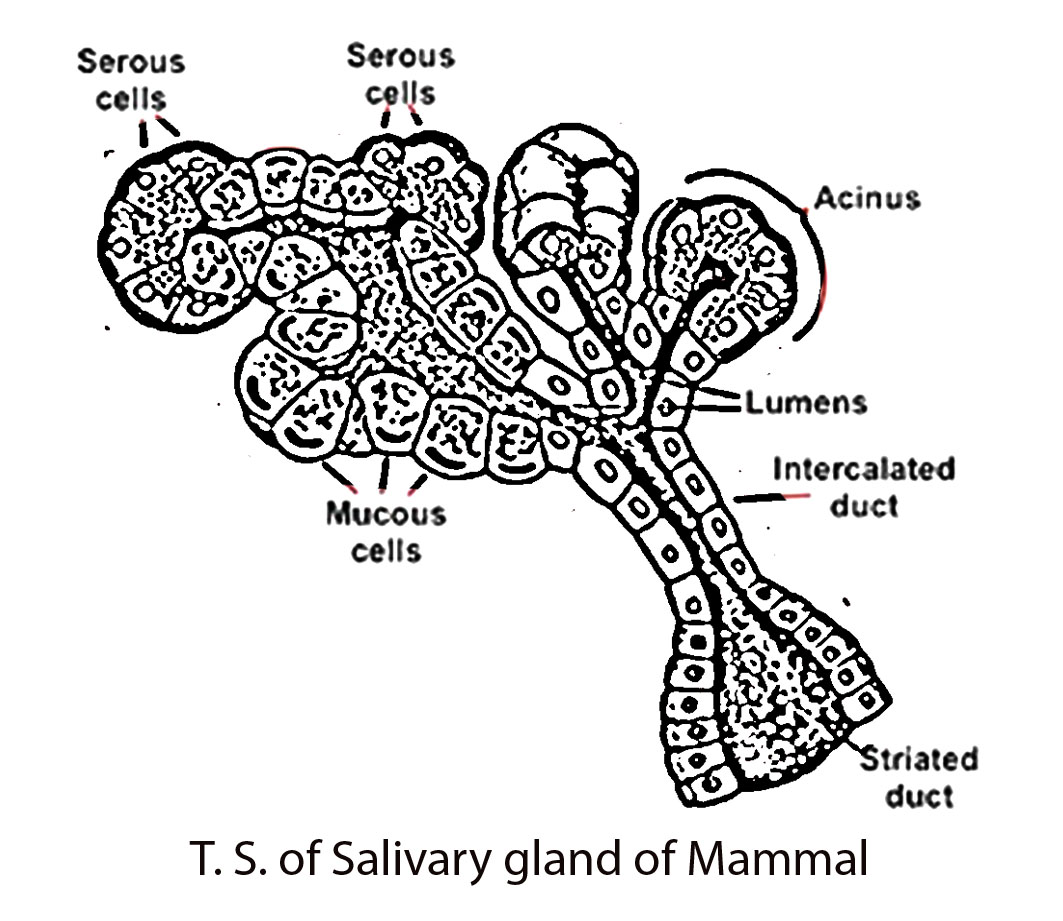 6. From alveoli arises duct unites to form a salivary duct which opens into the mouth.